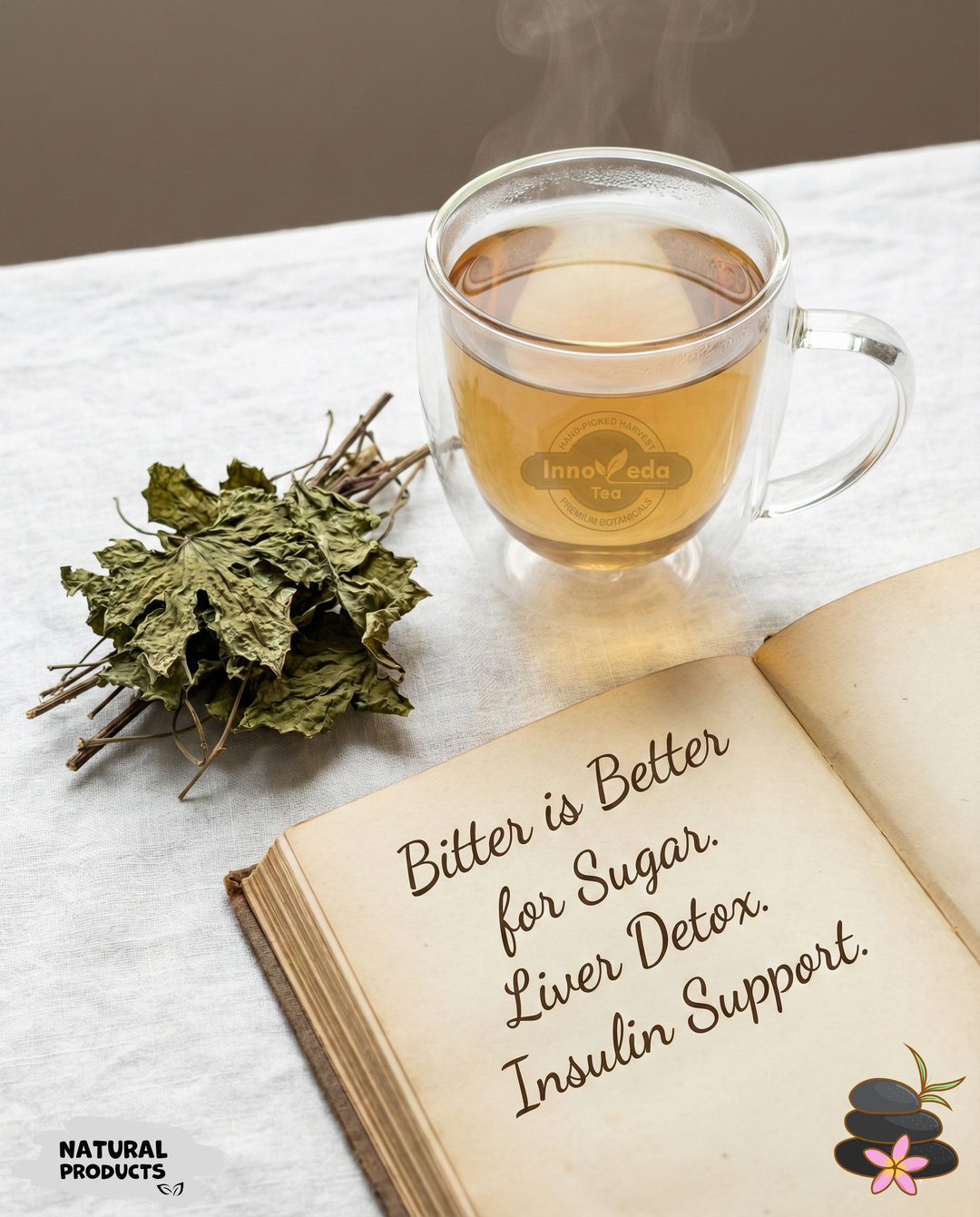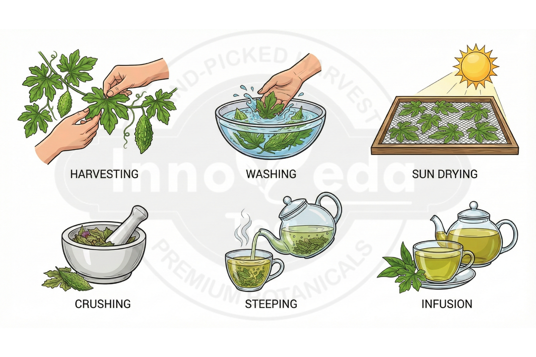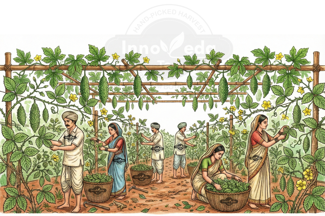 We wanted to challenge the palate to "embrace the bitter." Karela leaves are a potent traditional remedy often overlooked. This tisane is crafted to be a functional metabolic tool—a way to harness nature's insulin-mimicking properties in a simple, brewed form that supports the body's sugar management systems.