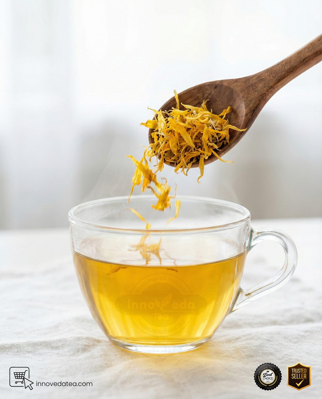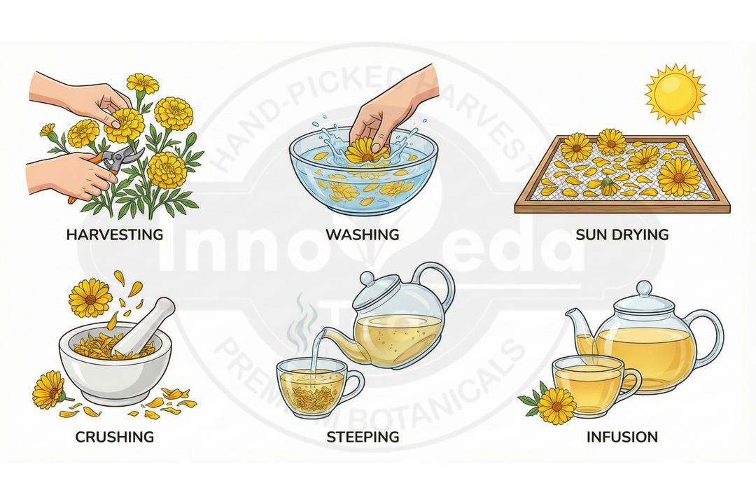 We focus on purity to avoid bitterness. Our tea uses only the bright orange petals, painstakingly hand-picked to ensure no green calyxes are included. This labor-intensive process guarantees a clean, floral taste without the harsh, grassy notes found in whole-flower blends.