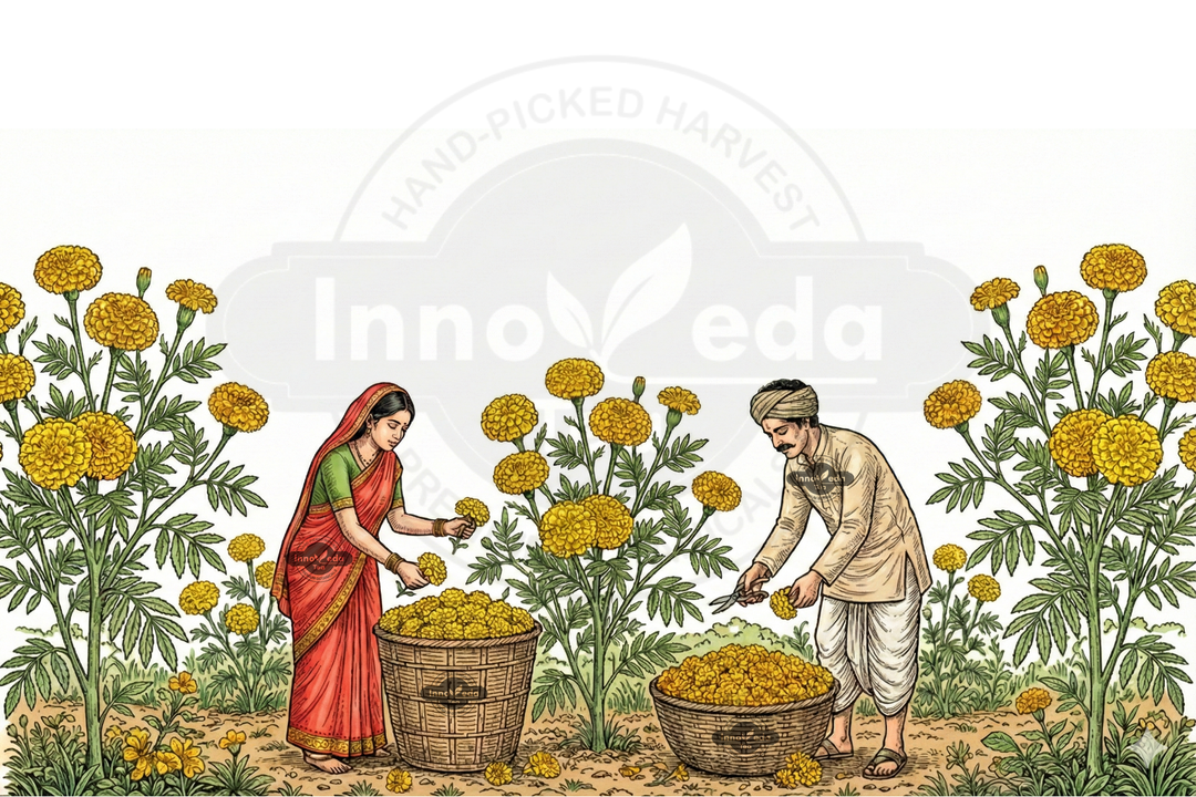 We select the vibrant yellow variety of Tagetes/Calendula for their specific carotenoid profile. Grown in full sun for maximum vitality.