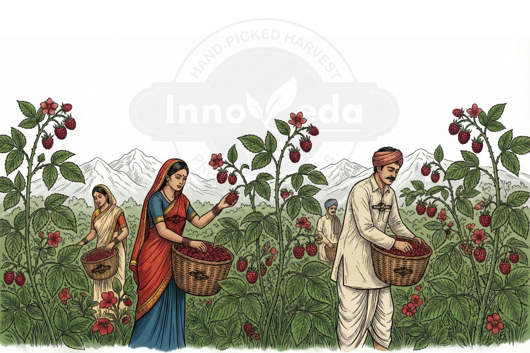 We source from growers who cultivate the Rubus idaeus plant specifically for its leaves, ensuring they are nutrient-dense.