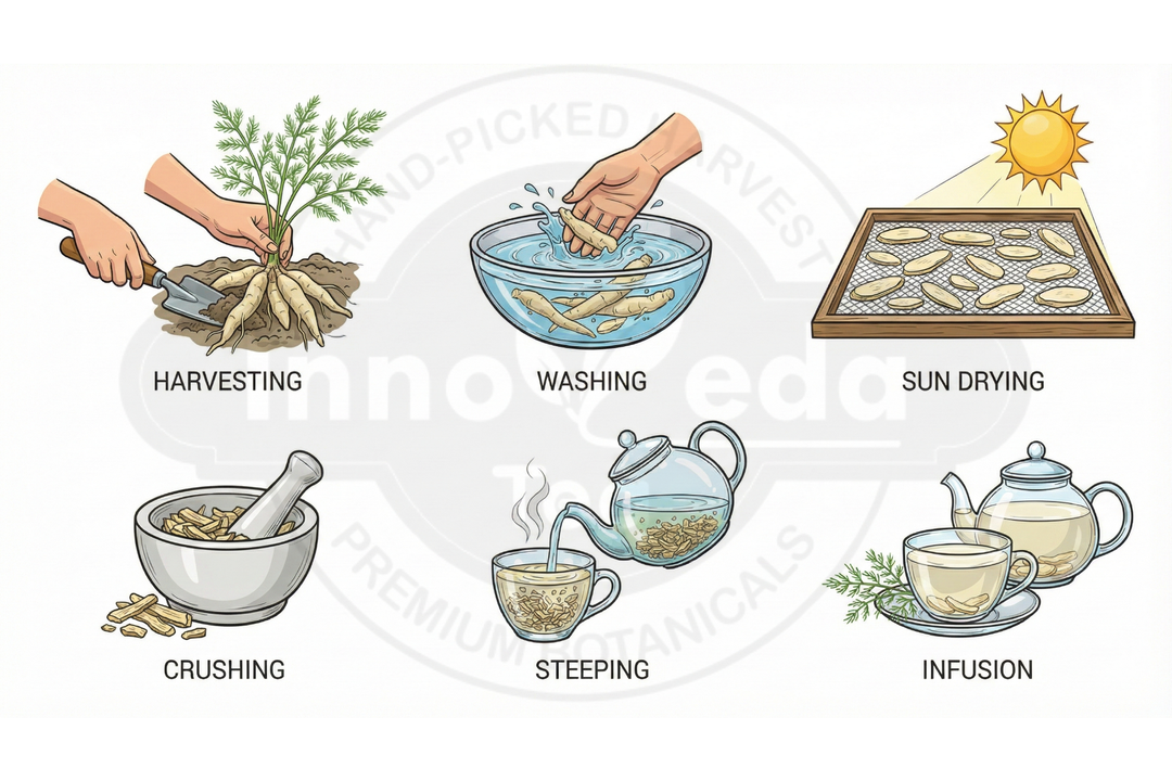 We prioritize gentle processing. Our roots are washed and dried in the shade to preserve the soothing saponins. This careful method ensures a sweet, potent brew that lacks the harshness often found in commercially sun-dried alternatives.