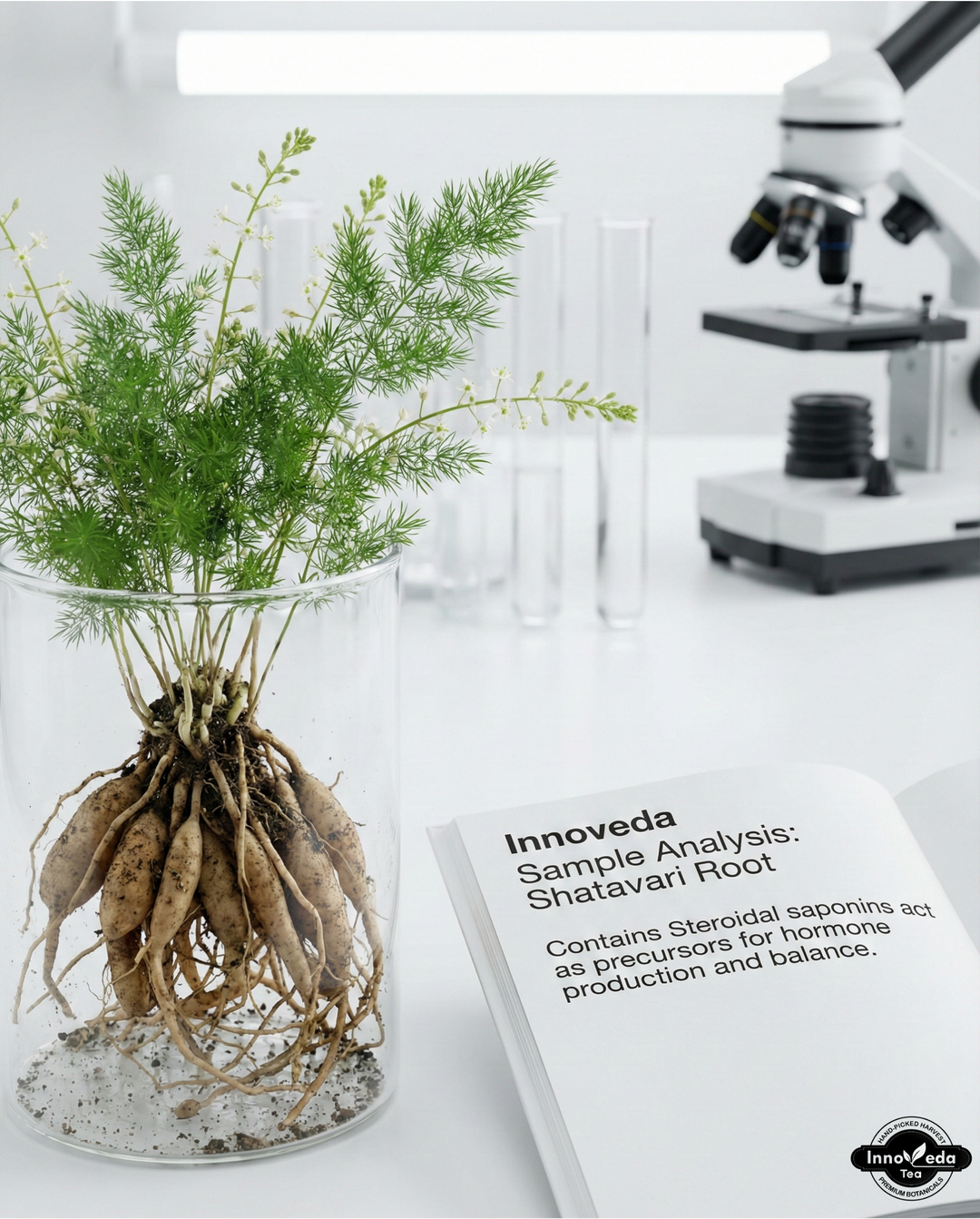 It is the main Rasayana for women in Ayurveda. Scientifically, it contains steroidal saponins that act as precursors for hormone production, helping to regulate cycles and increase Shukra (reproductive fluids) naturally.
