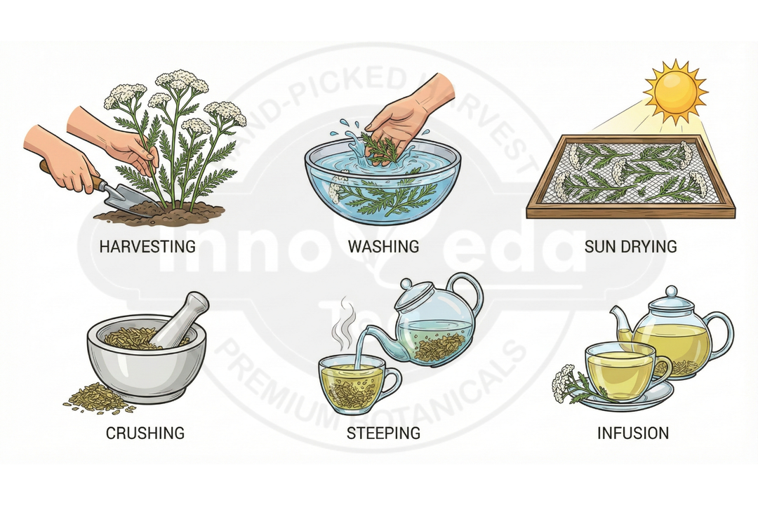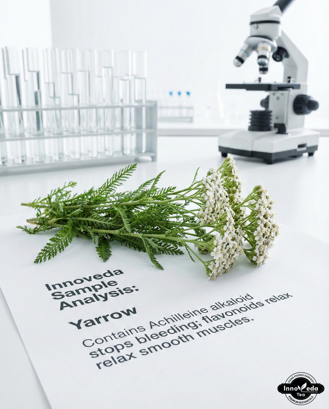 It is steeped in legend and science. Named after Achilles, who reportedly used it to heal his soldiers' wounds. Scientifically, it contains achilleine, an alkaloid known to stop bleeding, and flavonoids that relax smooth muscles, validating its historical use as a powerful hemostatic and relaxant.