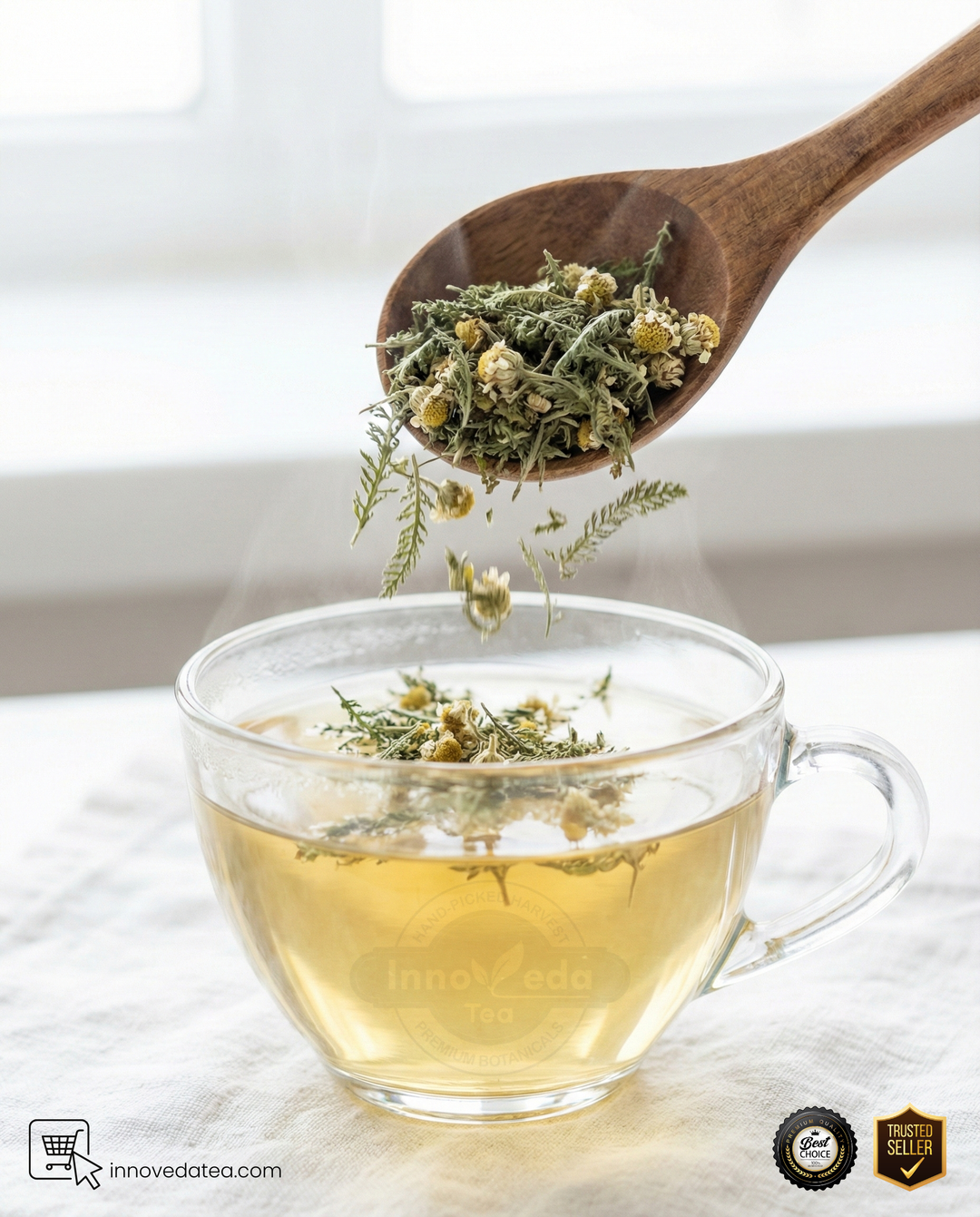 Innoveda’s Yarrow Tisane is aromatic, bitter, and slightly peppery. It is a potent, traditional brew for when you need immune support.