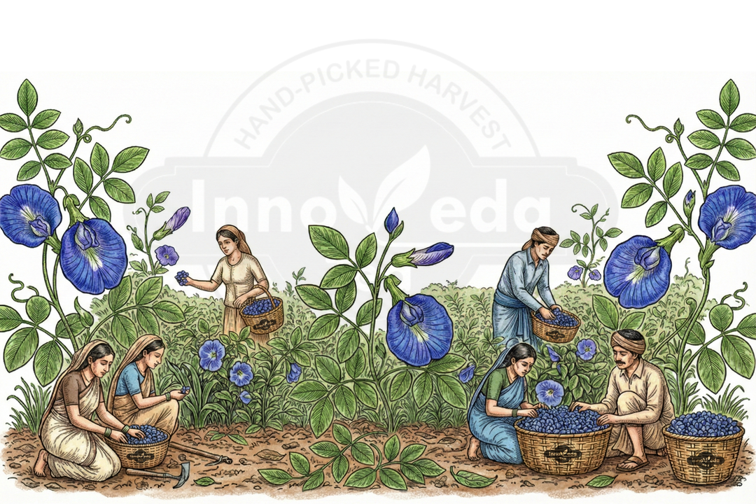 It is ancient wisdom backed by modern science. Known as Aparajita in Ayurveda, it is used to enhance memory (Medhya) and intellect. Scientifically, the flowers are rich in ternatins (anthocyanins), which are linked to powerful nootropic effects and antioxidant protection.