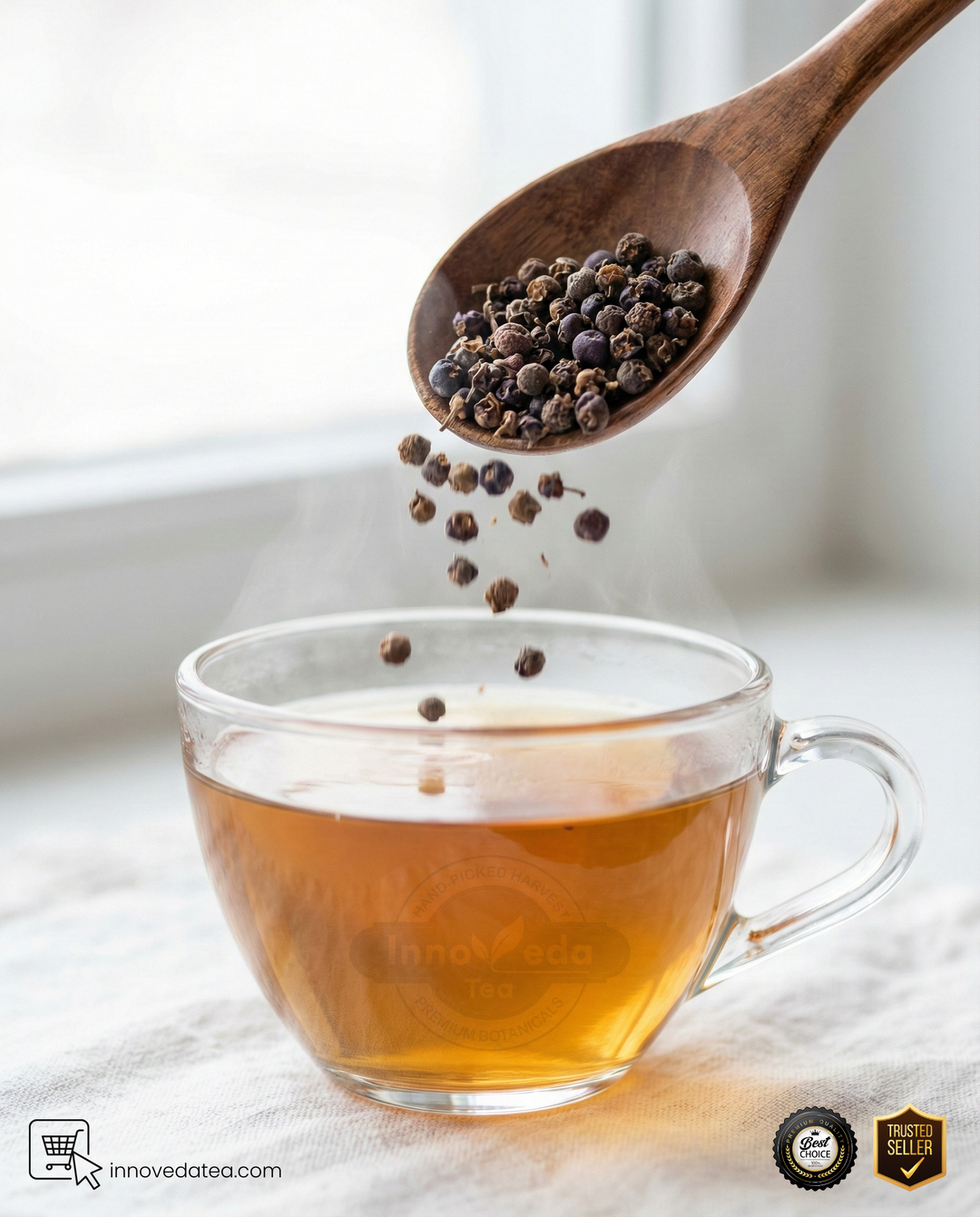 This is an aromatic experience. The brew offers a distinct peppery kick, reminiscent of black pepper but with floral and menthol undertones. It is warming and slightly spicy, awakening the senses while calming the internal systems.