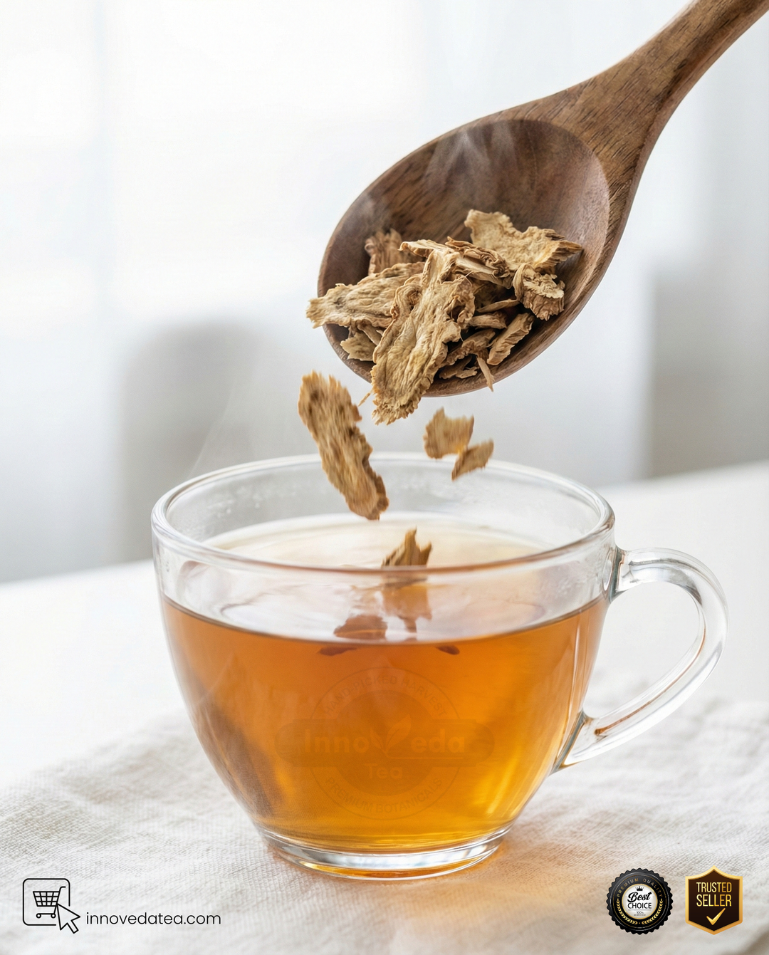 - Steep: Steep for 10 minutes (roots need time to release bioactives).