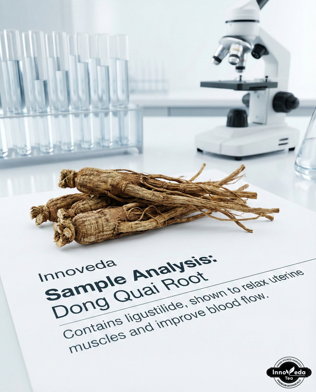 Known as the "Female Ginseng," Dong Quai is revered as a supreme blood tonic. We chose this root to offer a functional solution that warms the body and invigorates circulation. It supports the body's natural ability to replenish itself after menstruation, moving beyond simple symptom relief to deep restoration.