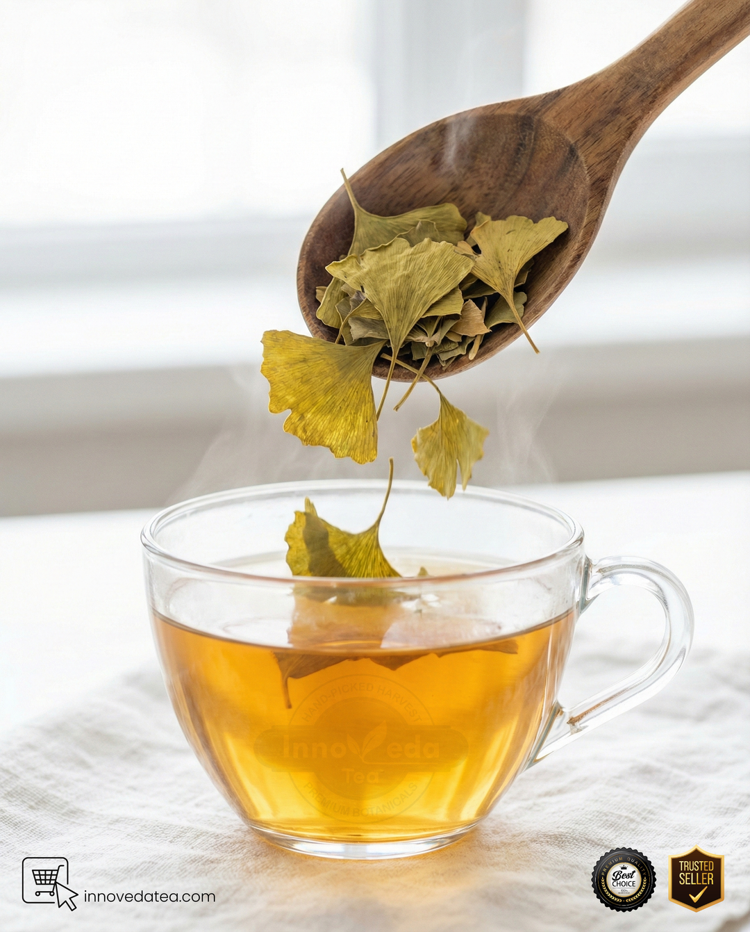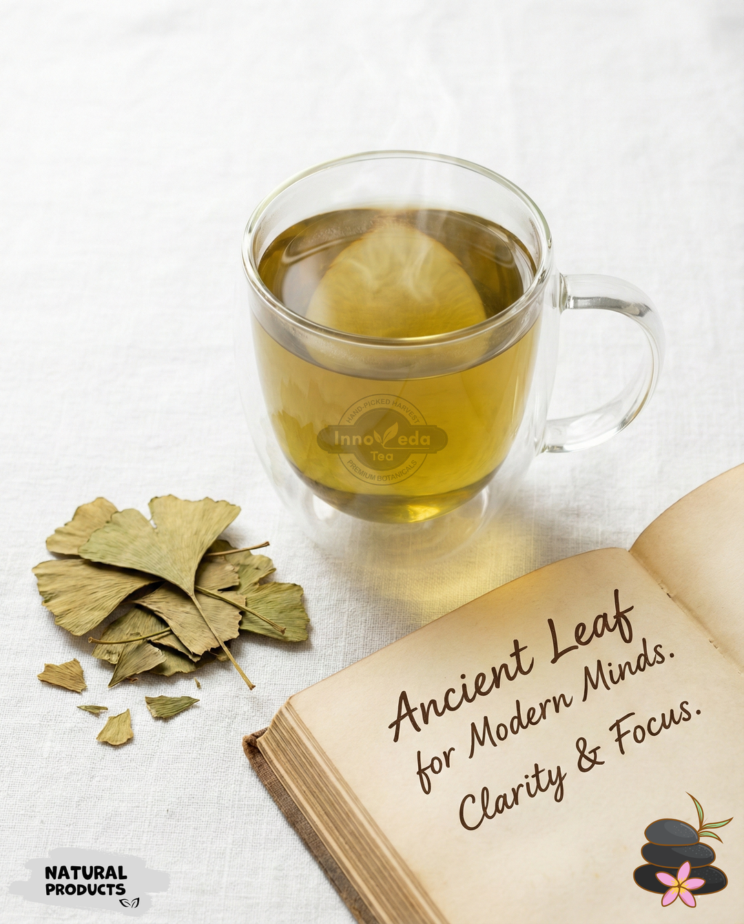 Innoveda’s Ginkgo Leaf Tisane has a mild, earthy, and slightly sweet flavor. It is a gentle, cerebral tea for moments requiring mental clarity.