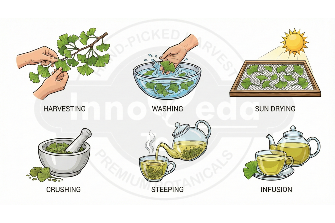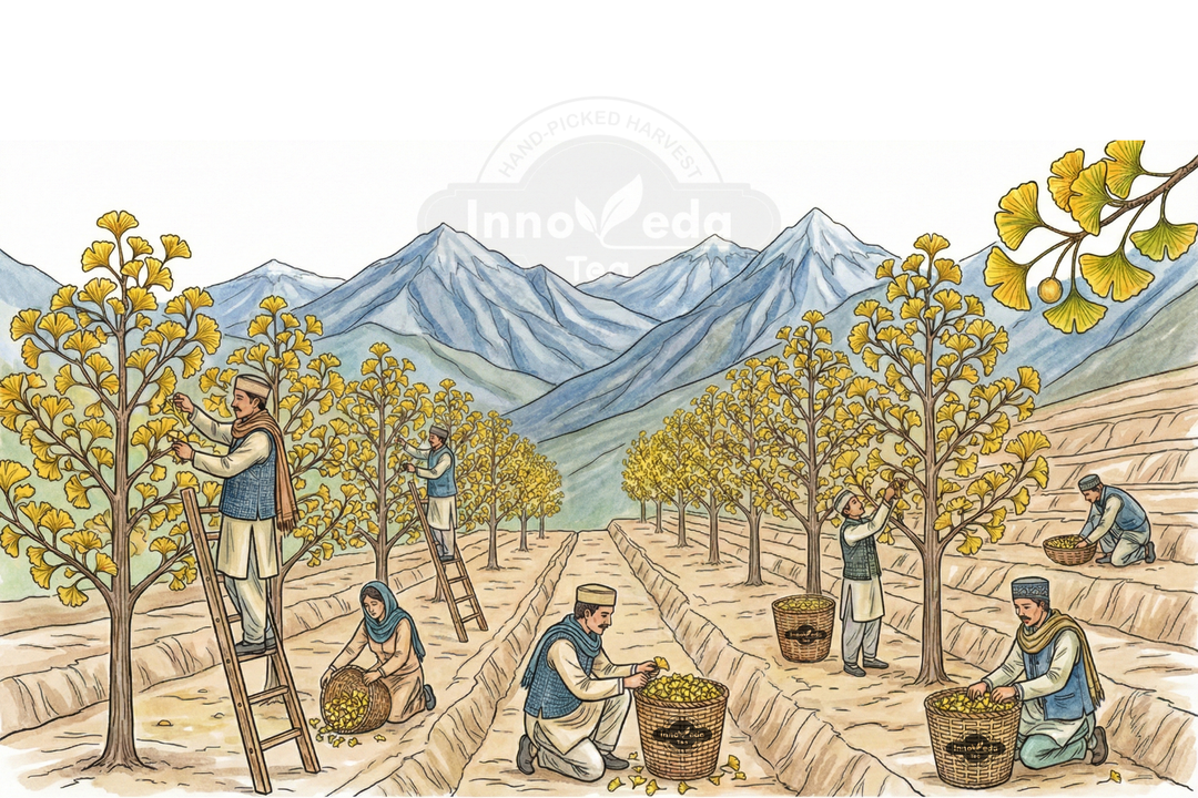 Harvested from mature Ginkgo trees in controlled orchards, ensuring the leaves are free from pollutants which these trees are known to absorb.