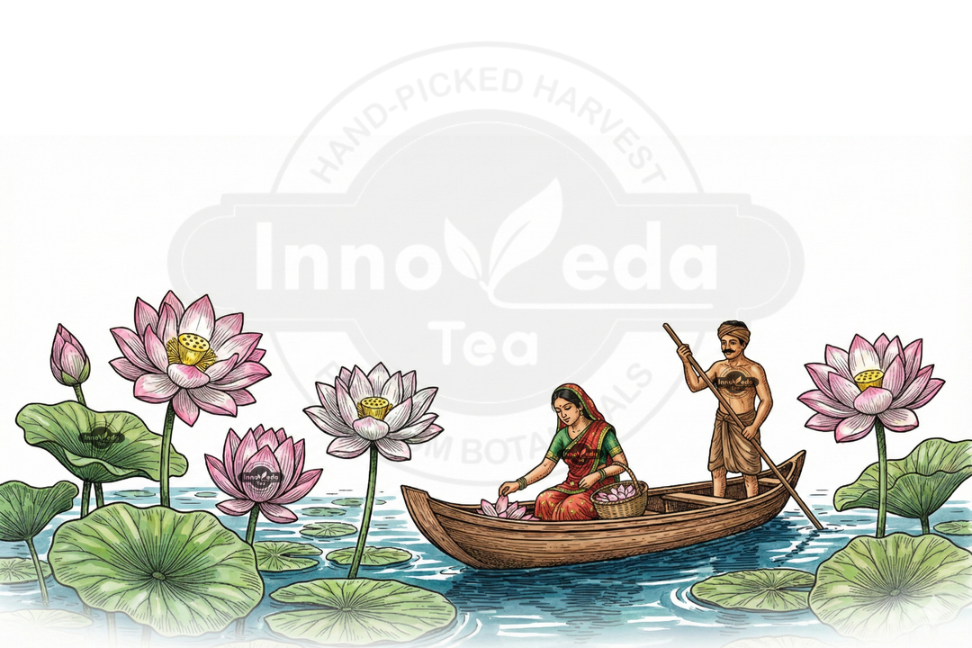 Innoveda’s Lotus Petals Tisane is mild, floral, and slightly sweet. It offers a graceful, calming tea experience that feels spiritually grounding.