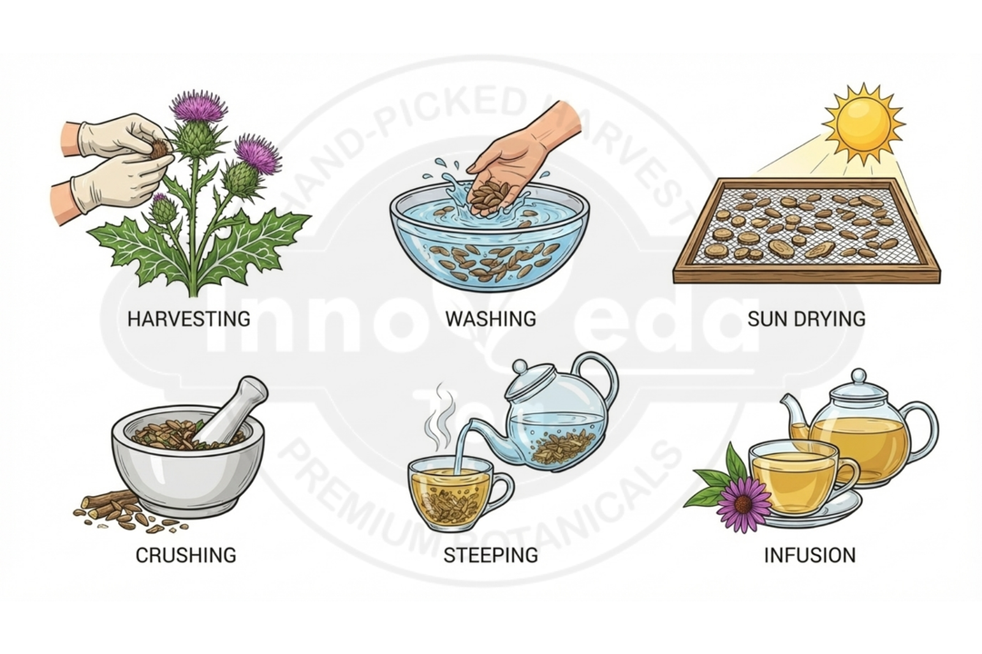 We believe in the power of the whole plant. Brewing crushed seeds releases the highest concentration of Silymarin oils which are often lost in standard teabags. It’s a dual-purpose functional food: you can crush and brew them for tea, or eat them raw for fiber and direct liver support.