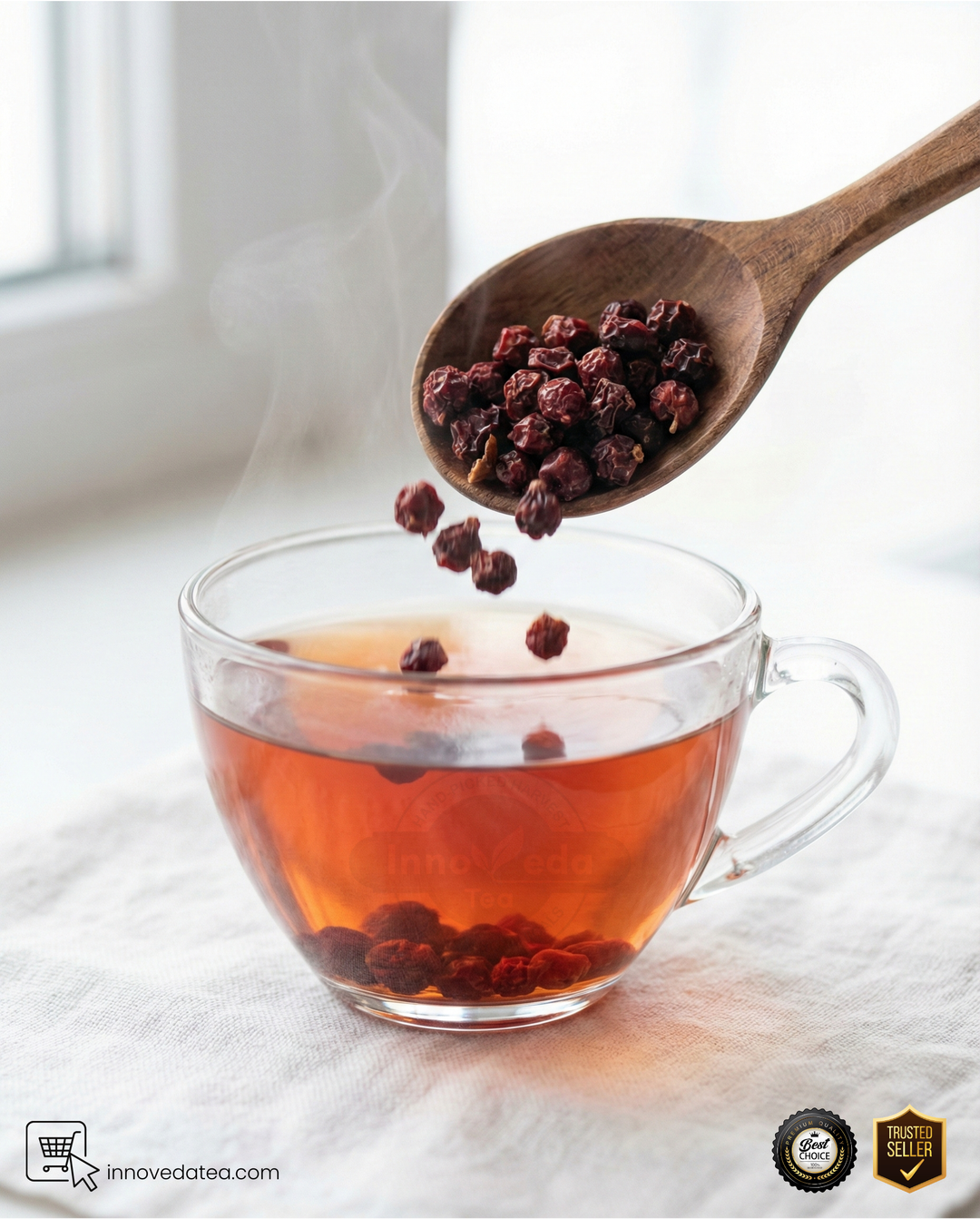 Innoveda’s Schisandra Tisane is a wild ride for the palate—simultaneously tart, sweet, and salty. It is a sophisticated tonic for total wellness.