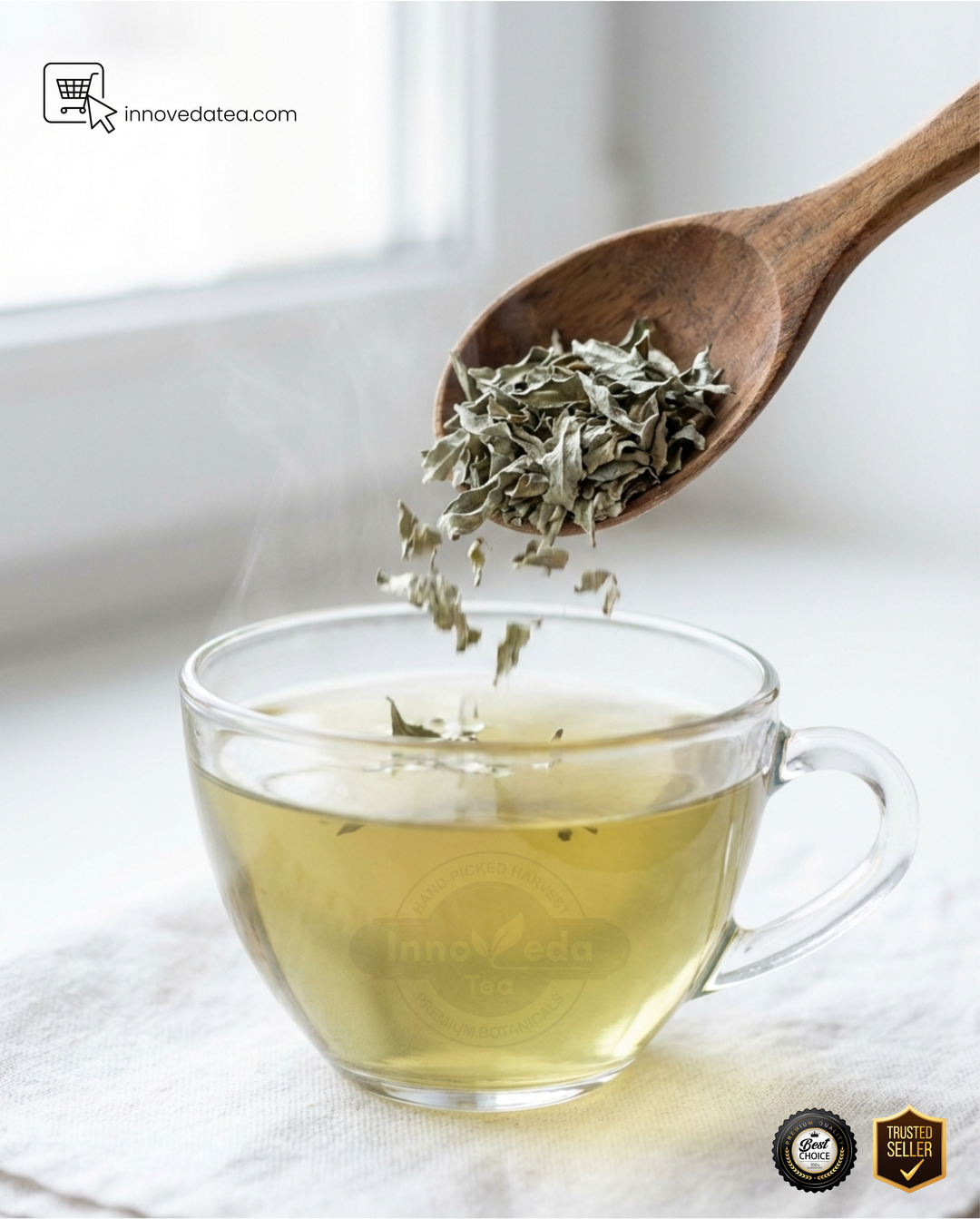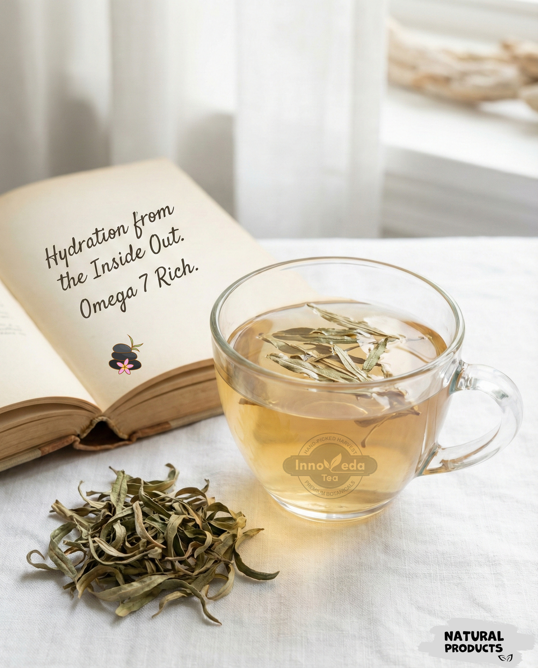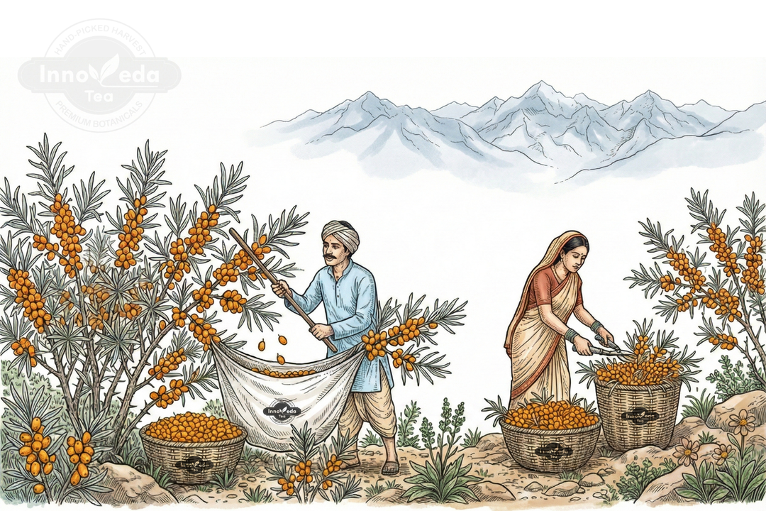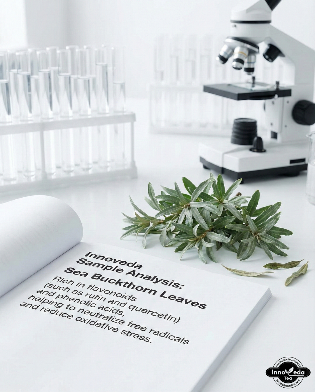 Innoveda’s Sea Buckthorn Leaf Tisane is mild, earthy, and smooth. It is a restorative daily tea for resilience.