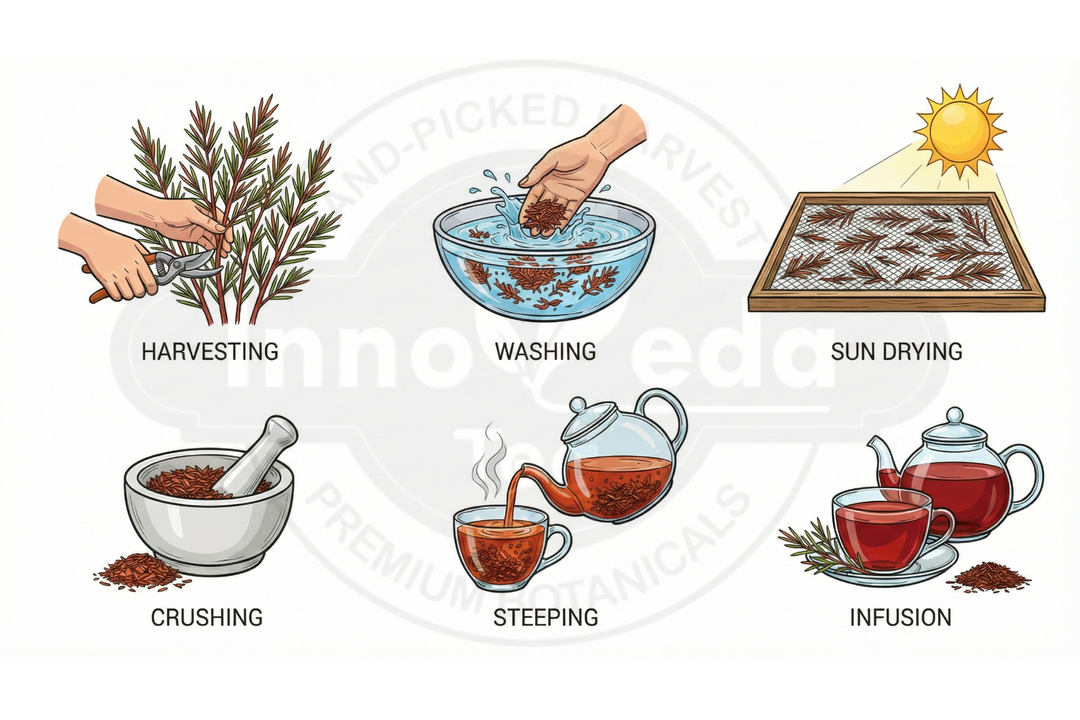Grown exclusively in the Cederberg region of South Africa. Our growers ferment the needle-like leaves under the African sun.