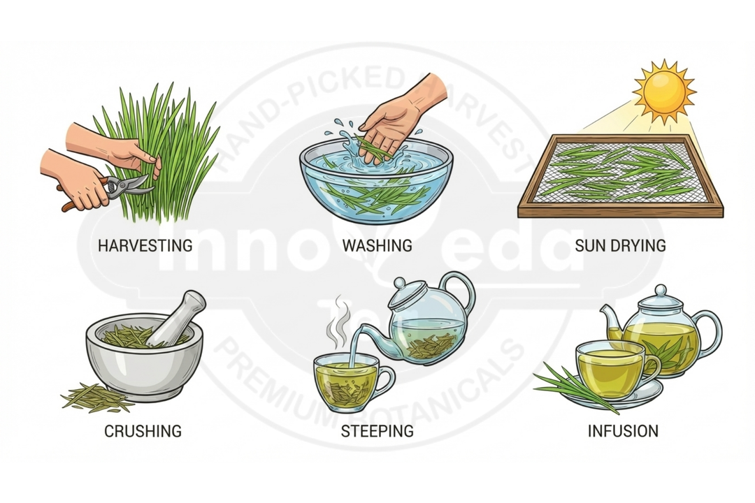 Harvested at the "jointing stage"—the peak nutritional point before the grain forms. Our growers ensure these young shoots are cultivated in clean, chemical-free soil to maximize mineral absorption.