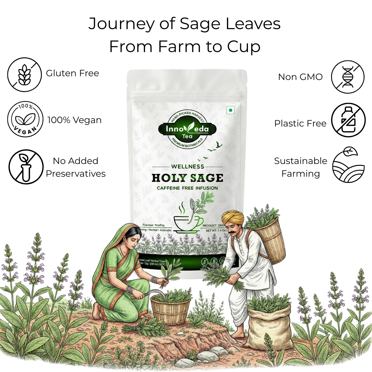 Indischer Weißer Salbei enthält lebenswichtige Antioxidantien und andere Nährstoffe mit gesundheitsfördernden Eigenschaften. Zu den möglichen Vorteilen von Salbeitee gehören: Verbesserung des Gedächtnisses, Bekämpfung von Entzündungen, Kontrolle des Blutzuckers, Beschleunigung der Hautheilung, Linderung von Halsschmerzen und Mandelentzündung sowie Behandlung von Fieberbläschen.