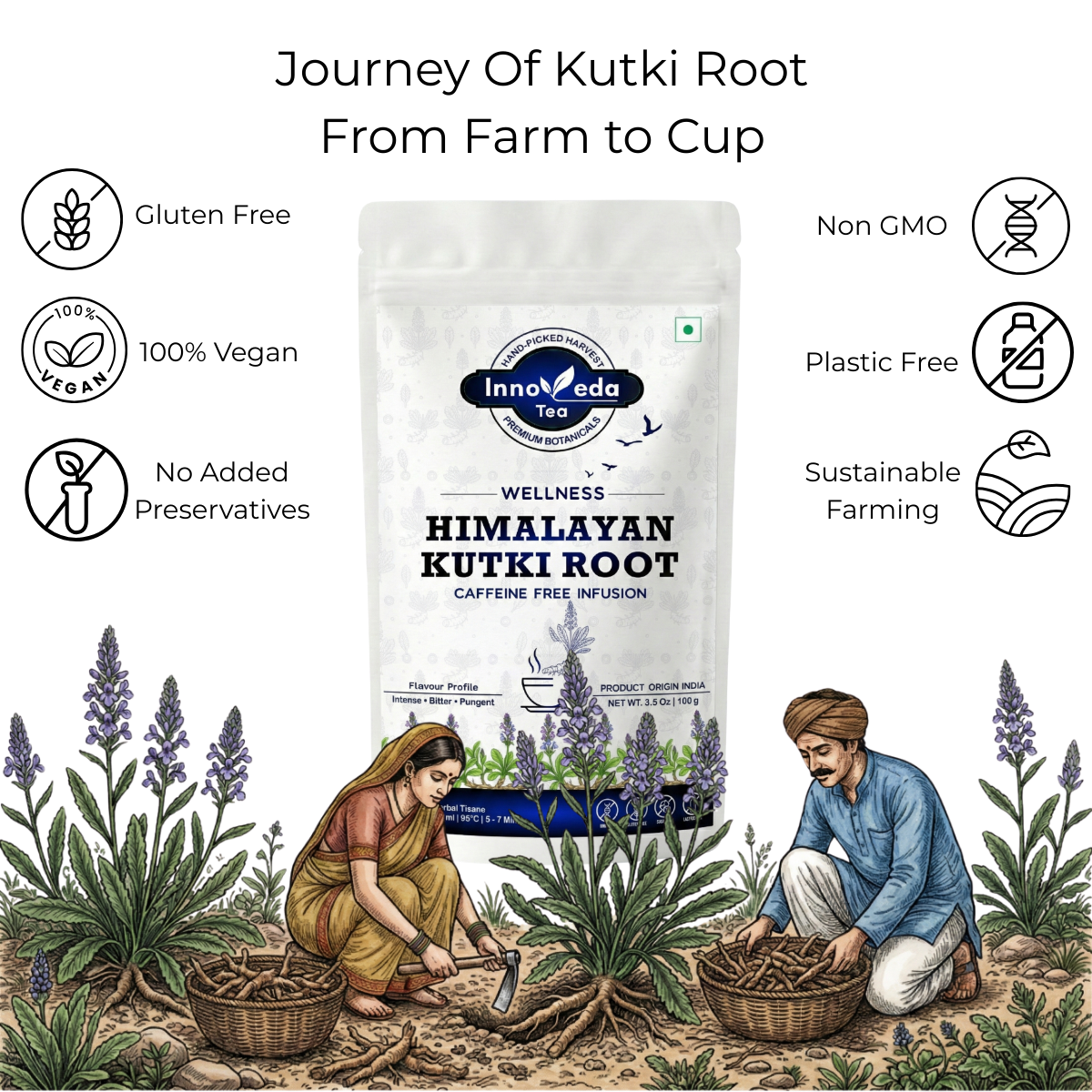 Sustainability is our priority. Kutki is a rare, endangered Himalayan herb. We ensure our roots are sustainably wild-harvested from high-altitude regions, adhering to strict conservation guidelines to protect the species while delivering maximum potency.