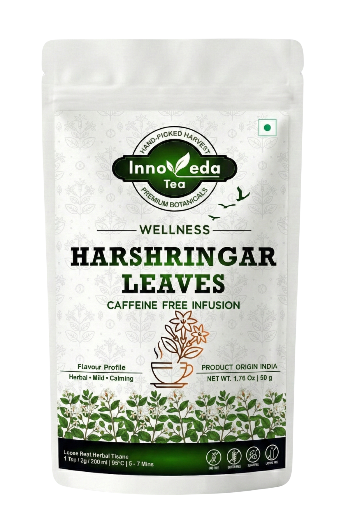 Harshringar-Tee (Nyctanthes Arbortristis) wird aus den Blättern der in Südasien heimischen Pflanze hergestellt, die auch als Nachtjasmin oder Parijat bekannt ist. Der Tee ist reich an nützlichen Verbindungen wie Fructose, Glucose und Carotin und kann zur Behandlung einer Vielzahl von Beschwerden eingesetzt werden, darunter Fieber, Husten, Steifheit, Knochen- und Gelenkschmerzen und Verdauungsbeschwerden. Genießen Sie den tonischen, bitteren Geschmack und erleben Sie die natürlichen Heilkräfte des Harshringar-Tees.
