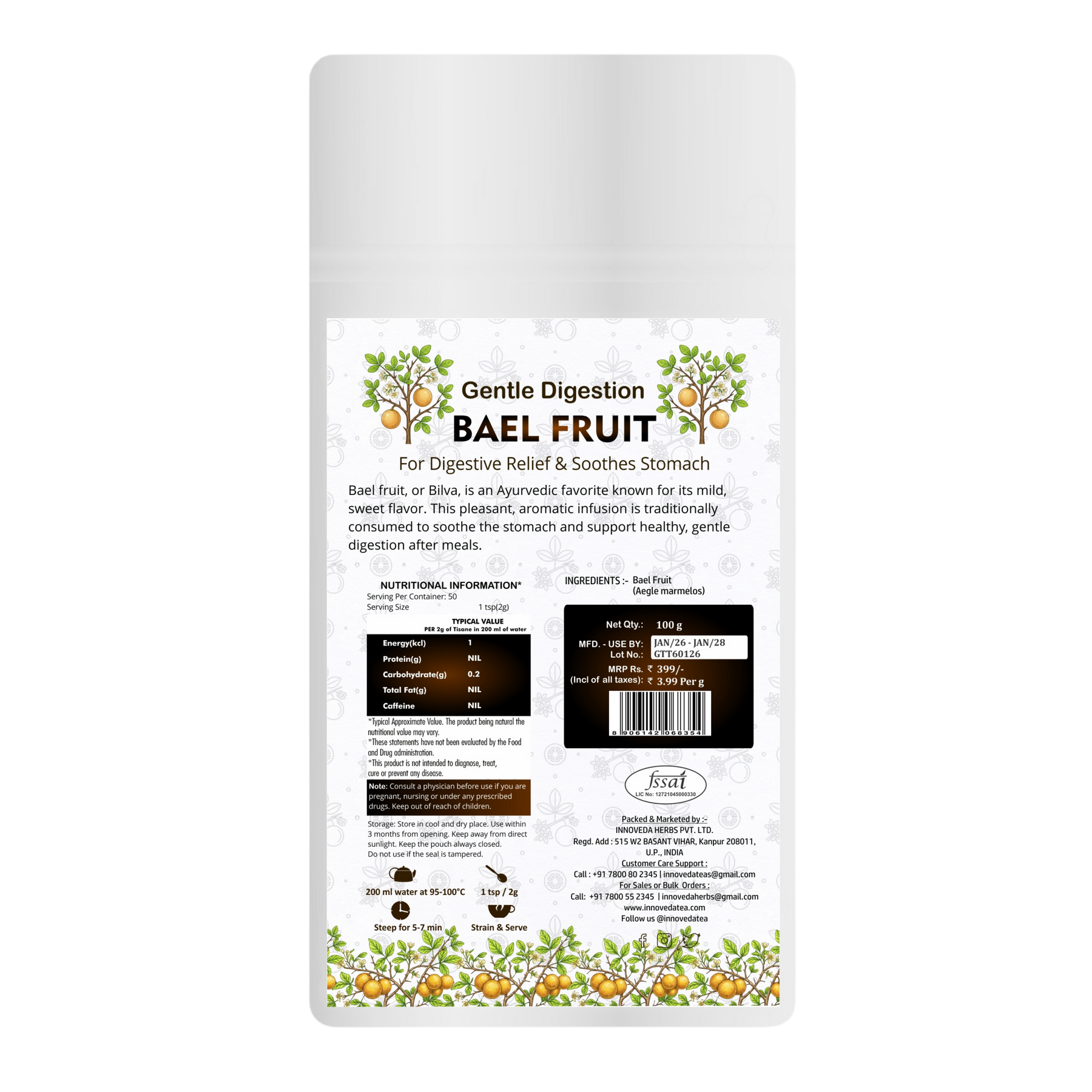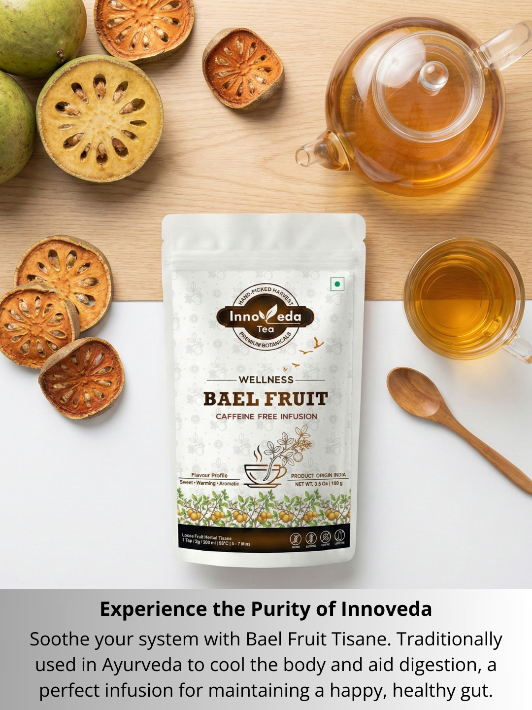 Le thé aux fruits de Bael est une ancienne boisson thaïlandaise à base de fruits séchés de Bael. Riche en vitamines, minéraux et antioxydants, ce thé rafraîchissant est traditionnellement utilisé pour détoxifier et protéger le foie. Il a une saveur douce et aromatique et un arrière-goût de rose. A déguster chaud ou froid pour une boisson revigorante et saine.