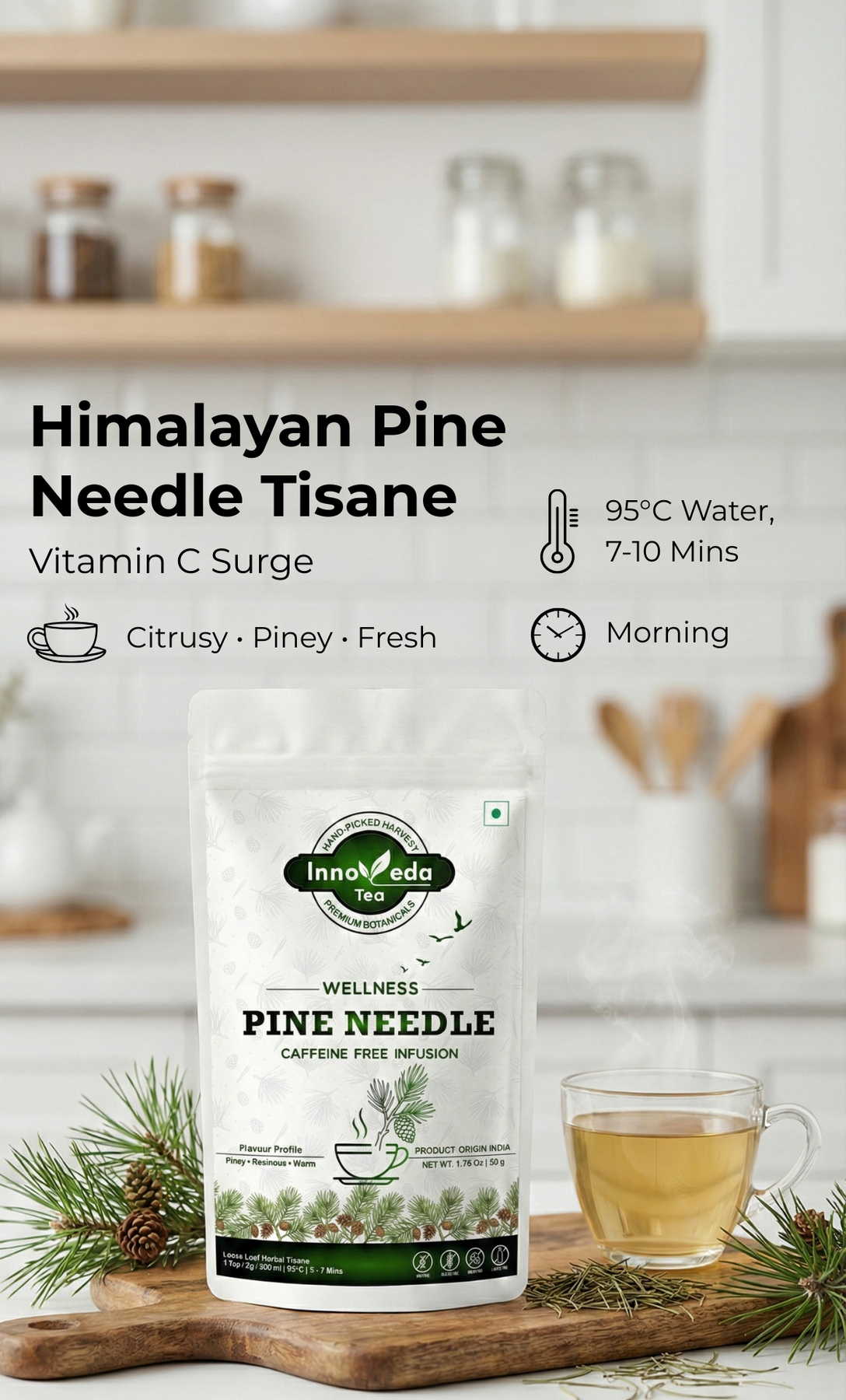 Découvrez le goût puissant du thé aux aiguilles de pin blanc, fabriqué à partir d’aiguilles de pin de printemps de l’Himalaya de haute altitude. Ce thé peut aider à apaiser votre toux et votre rhume, avec sa saveur unique de pin, de résine et d'agrumes mélangée à des nuances de menthe.