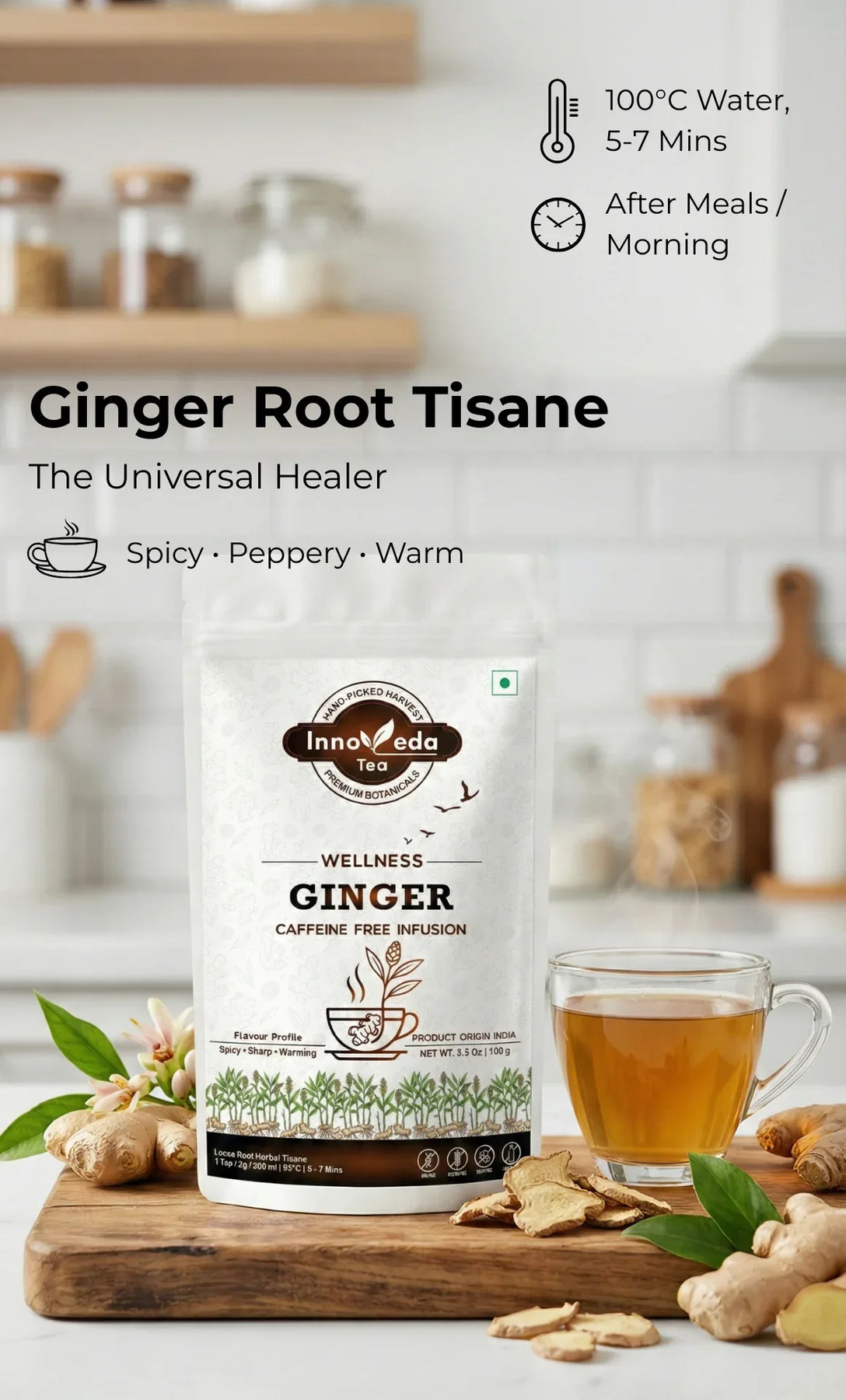 Known as "The Universal Healer," this blend is simple yet profound. Spicy, warming, and invigorating, pure Ginger root tea fires up digestion and relieves nausea. It was crafted to be the perfect comfort brew for any day, acting as a functional tool to warm the body from the core outwards.