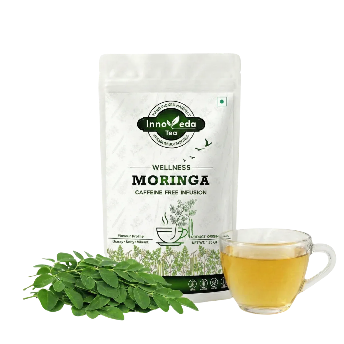 Notre thé aux feuilles de Moringa est composé à 100 % de feuilles de moringa séchées pour aider à détoxifier le corps, améliorer la digestion et équilibrer les doshas Vata et Kapha. Savourez ce thé infusion au goût subtil, aux notes complémentaires amères et sucrées qui boostent votre bien-être. Élevez votre tasse et revitalisez votre journée avec le pouvoir du moringa !