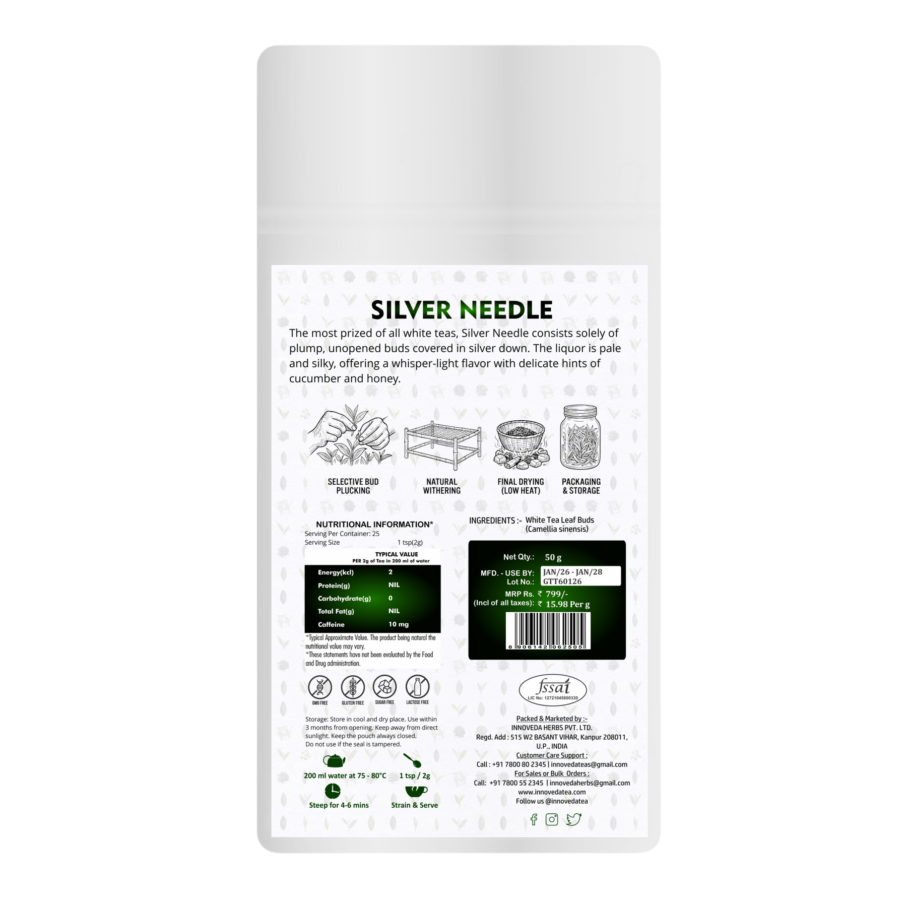 Le thé blanc Silver Needle est composé uniquement de bourgeons et contient un niveau élevé d'antioxydants et de polyphénols rares qui favorisent une bonne santé.