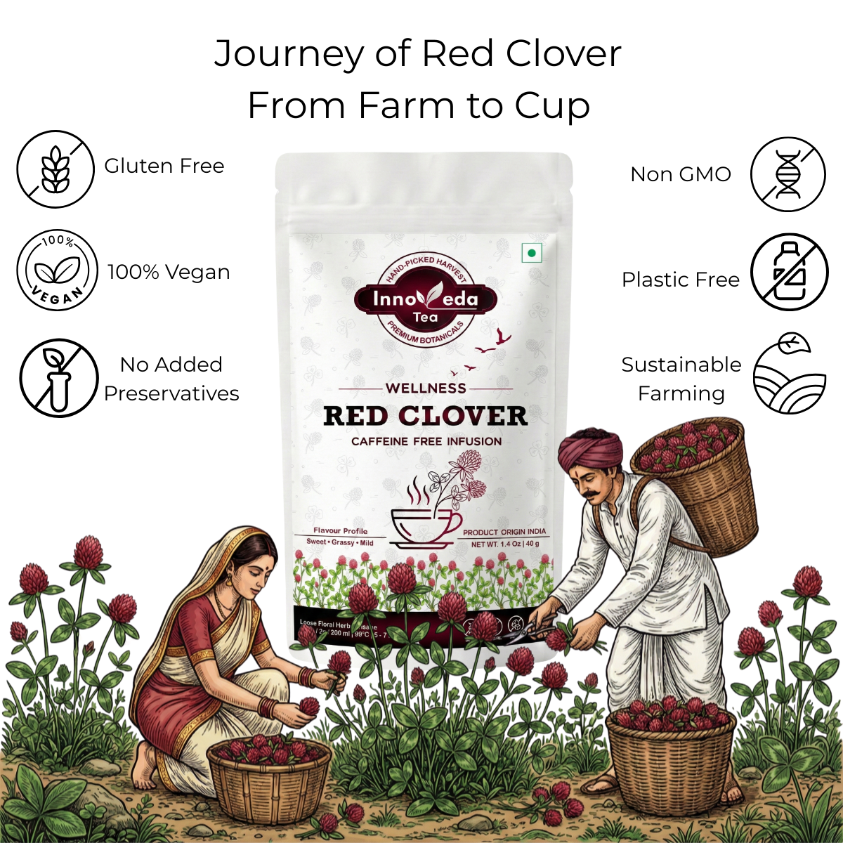Le trèfle rouge a une teneur élevée en isoflavones, censés diminuer certains symptômes de la ménopause tels que les bouffées de chaleur et les sueurs nocturnes. De plus, agissant comme diurétique et expectorant pour purifier le sang, améliorer la circulation et nettoyer le foie, le trèfle rouge est une plante populaire et bien connue pour augmenter la fertilité chez les hommes et les femmes. Composé de magnésium, le trèfle rouge peut améliorer la santé des hommes. Ses isoflavones aident à réduire l’amincissement et la chute des cheveux.