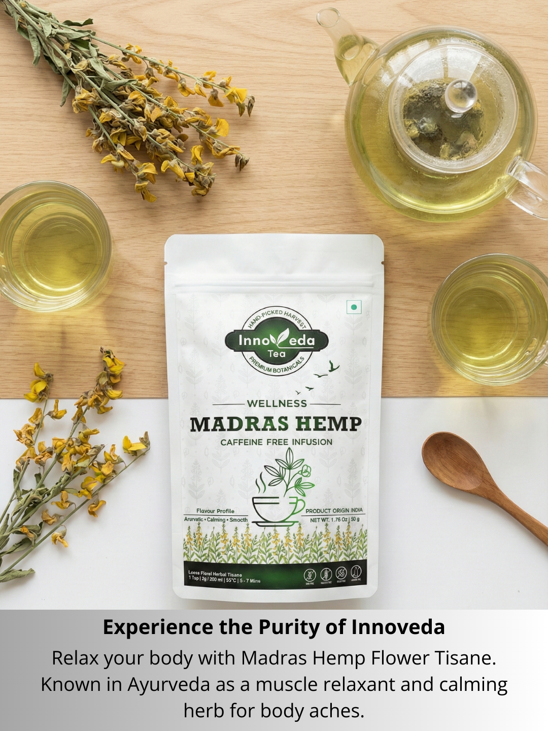 Madras Hemp Flower Tea Helps Hydrate & Maintain PH Levels (30 Tea Cups) 50 Grams - INNOVEDA