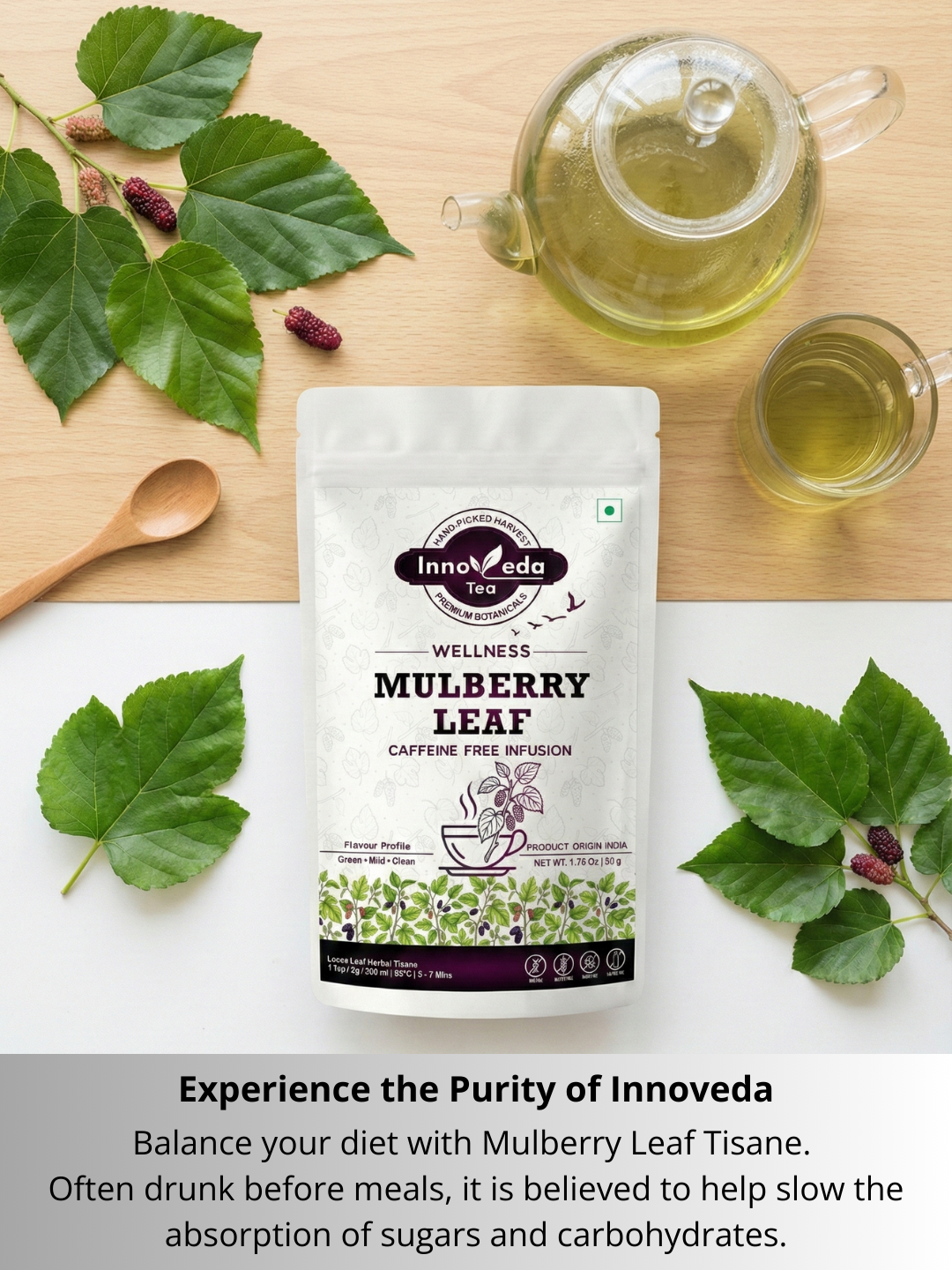White Mulberry Leaf Tea Help Reduce Inflammation & Uric Acid (30 Tea Cups) 50 Grams - INNOVEDA