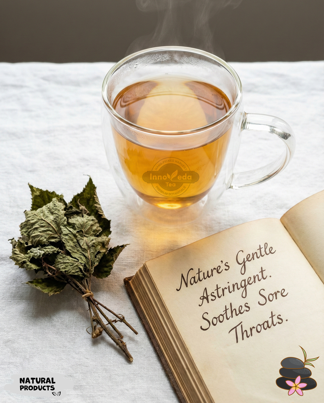 • Soothes Sore Throats: The natural tannins coat and protect irritated throats.