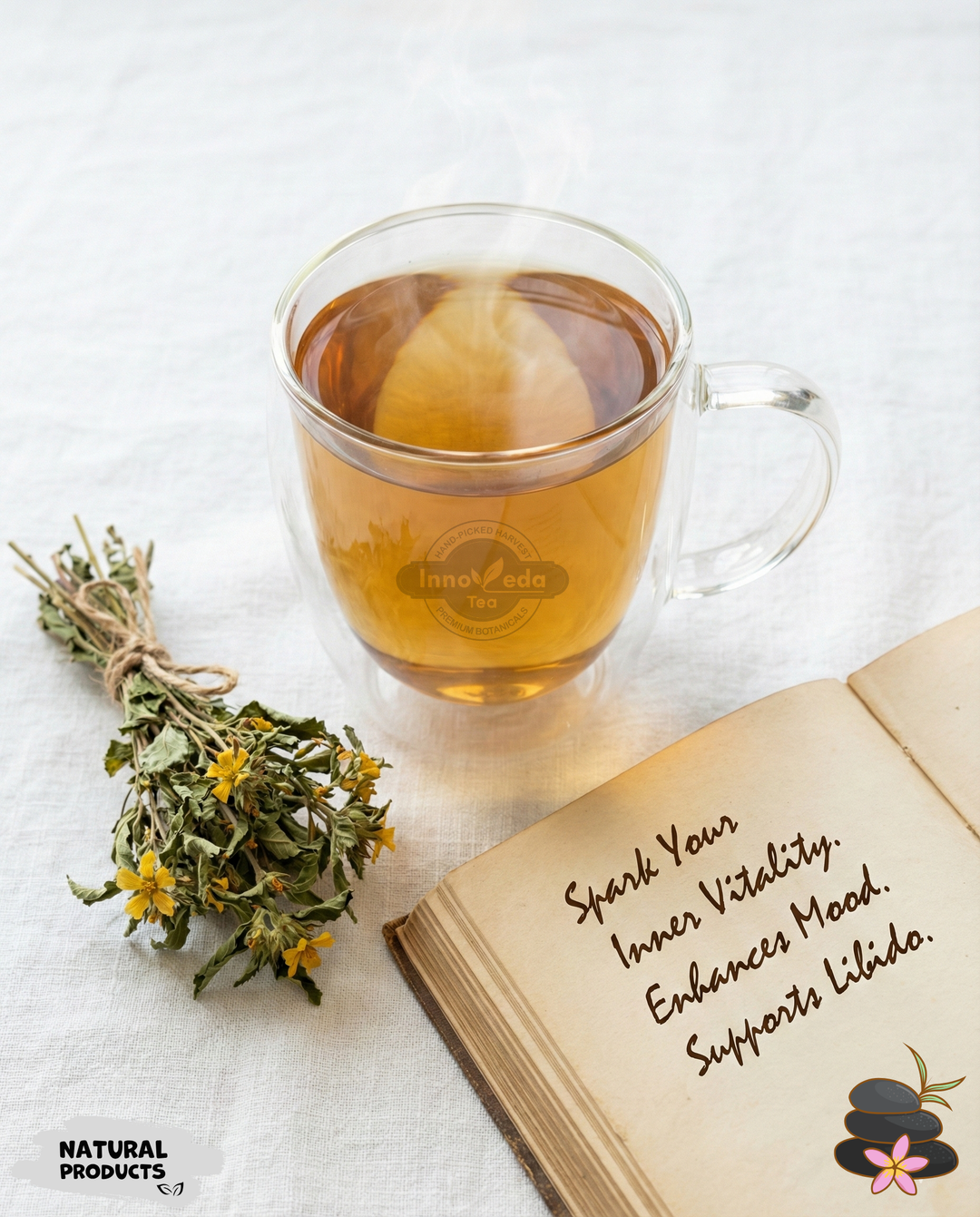 We wanted to capture the essence of "Uplift & Renew." Damiana is a celebrated mood-enhancer and aphrodisiac that works not by forcing energy, but by restoring it. This blend is crafted to be a daily ritual that sparks your inner vitality, helping you reconnect with your body and mind.